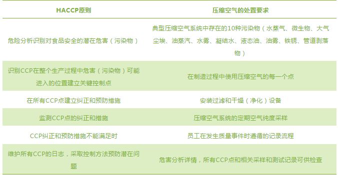 1、與干燥食品(比如谷物、奶粉)直接接觸的壓縮空氣