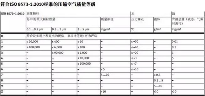 比如,ISO 8573-1:2010提出了壓縮空氣的關鍵質量要求,并規定了各個等級中可以存在的污染物含量和顆粒尺寸的最大數值。